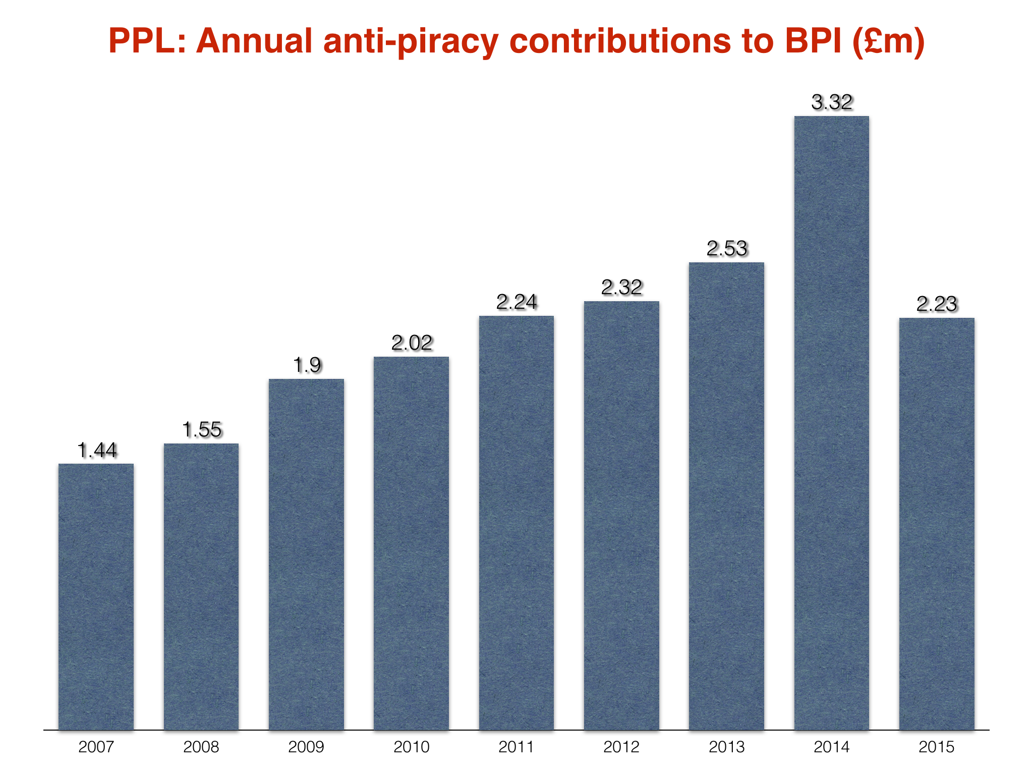 PPL’s direct anti-piracy contributions to the BPI reduced by 33% – or more than a million pounds – in 2015, down from £3.32m to £2.23m.