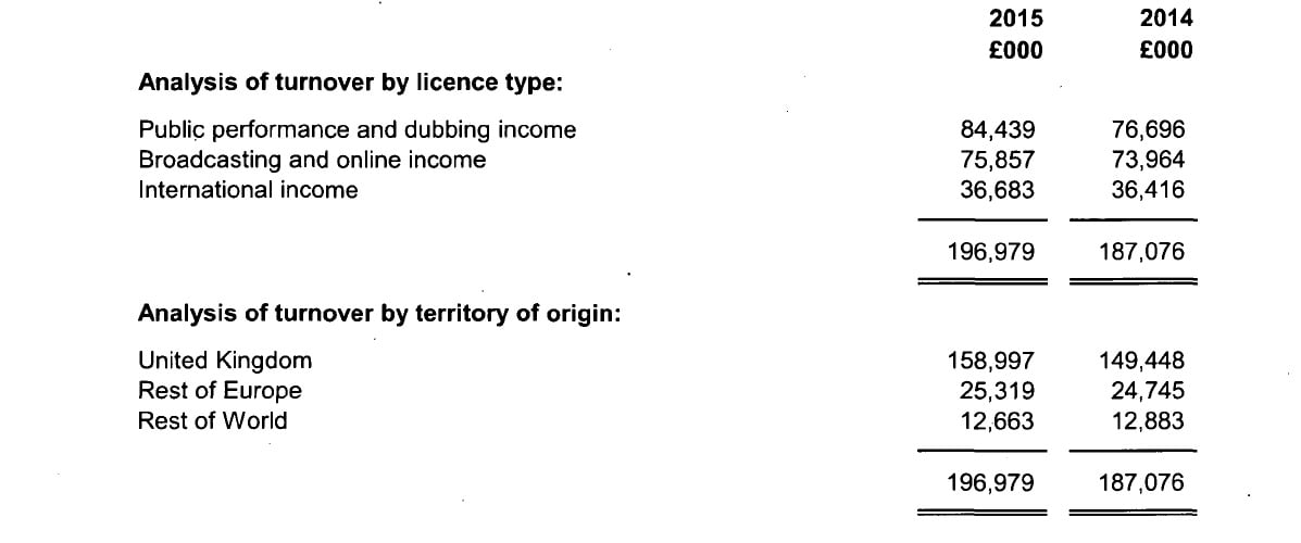According to a new filing on Companies House, the PRO collected £196.98m across the year, 5.3% up on the £187.08m collected in 2014 – a £9.9m increase.