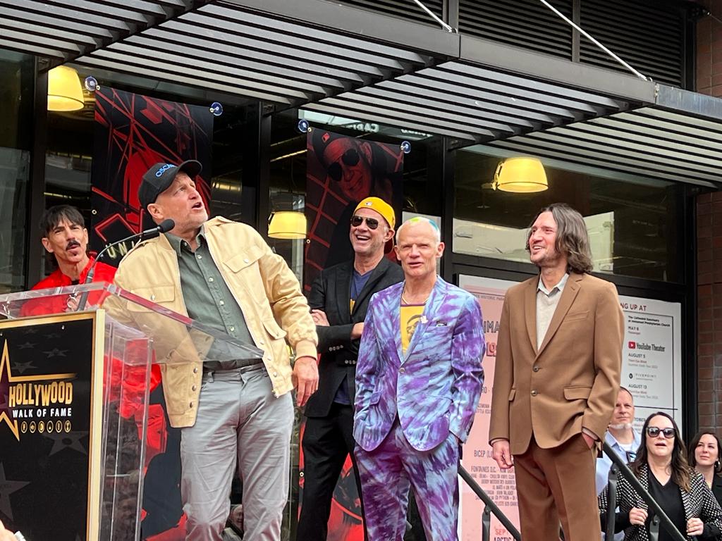 Band members Anthony Kiedis, Flea, Chad Smith and John Fruiscante attended the unveiling of the star, while speeches paying tribute to the group were made by Woody Harrelson and George Clinton.