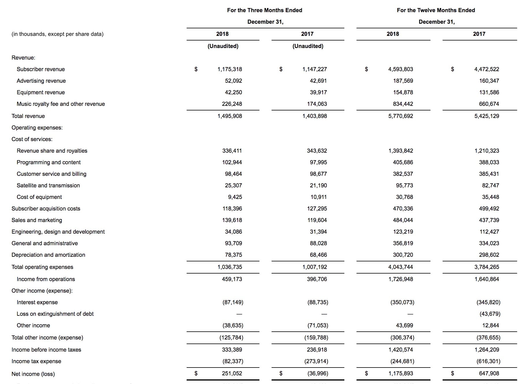 SiriusXM has published its operating and financial results for Q4 and full-year 2018 – revealing record revenue of $1.5 billion and $5.8bn respectively, up 7% and 6% year on year.