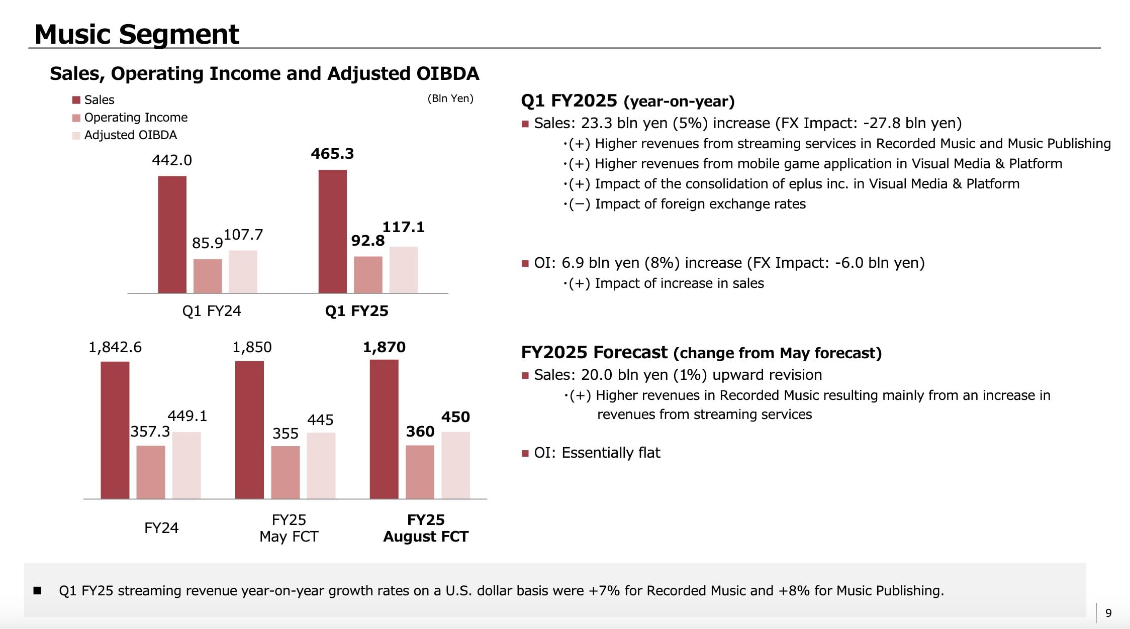 In calendar Q2 2025 (fiscal Q1 2025), Sony’s Music division posted an Adjusted OIBDA of 117.1 billion Yen (USD $810m).