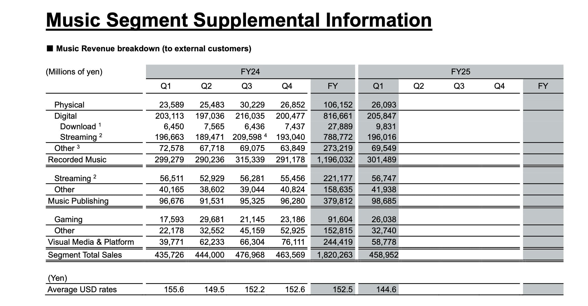 In calendar Q2 2025 (fiscal Q1 2025), Sony’s corporate Music division posted a quarterly operating income of 92.8 billion Yen (USD $642m).