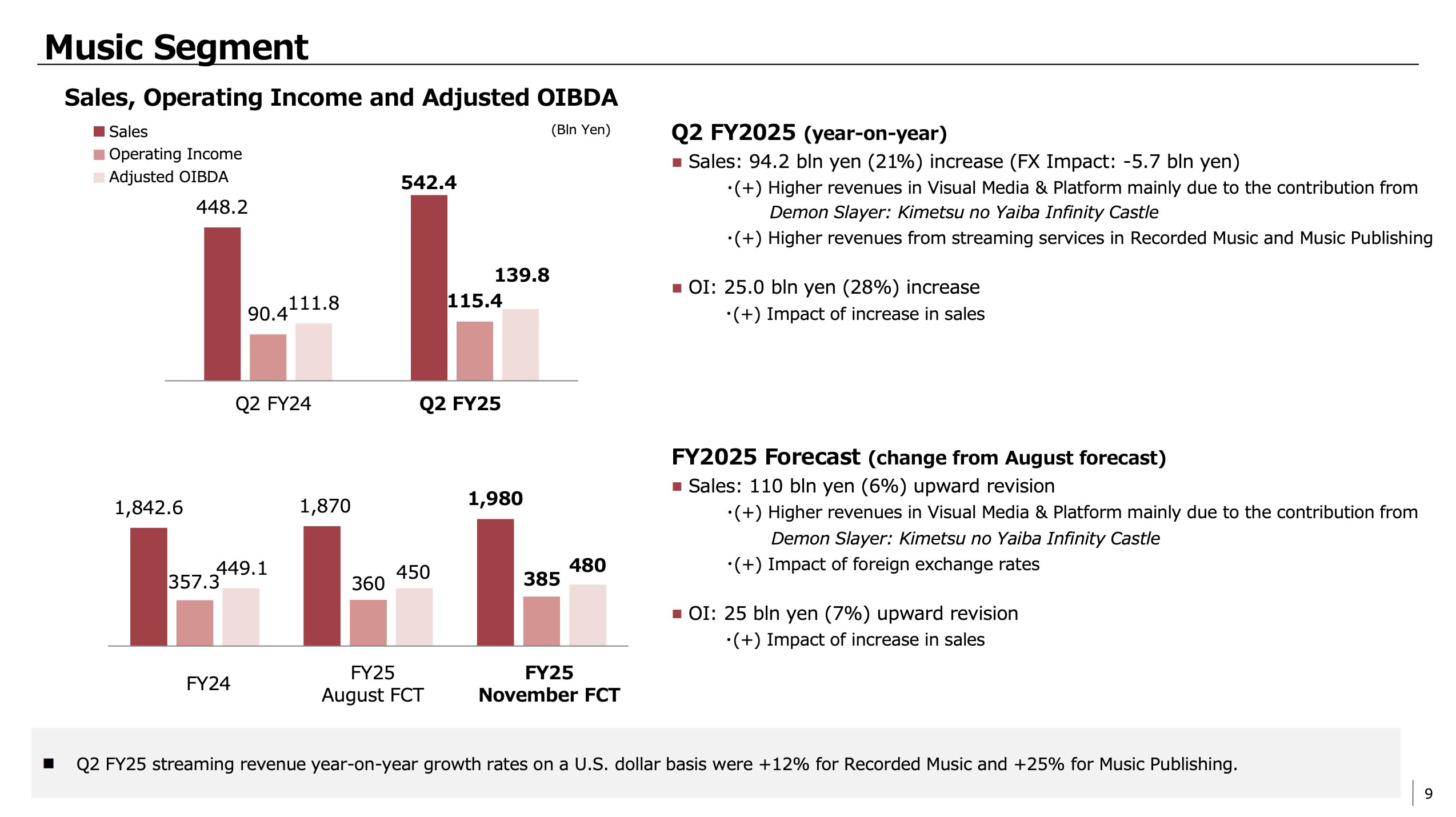 In calendar Q3 2025 (fiscal Q2 2025), Sony’s Music division posted an Adjusted OIBDA of 139.8 billion Yen (USD $949m).
