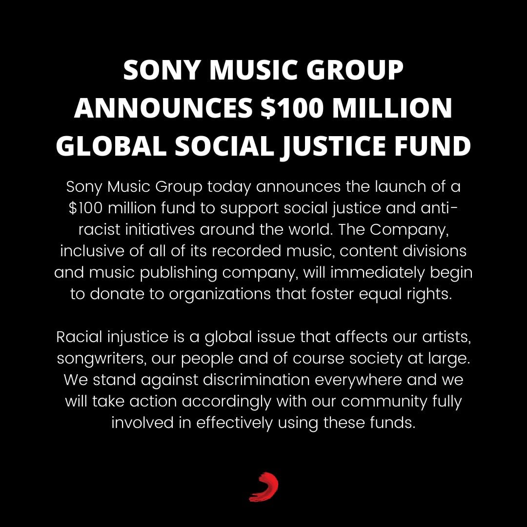 Sony Music Group, the umbrella for Sony’s recorded music and publishing operations in the US and elsewhere, has announced the launch of a $100m fund to “support social justice and anti-racist initiatives around the world”.