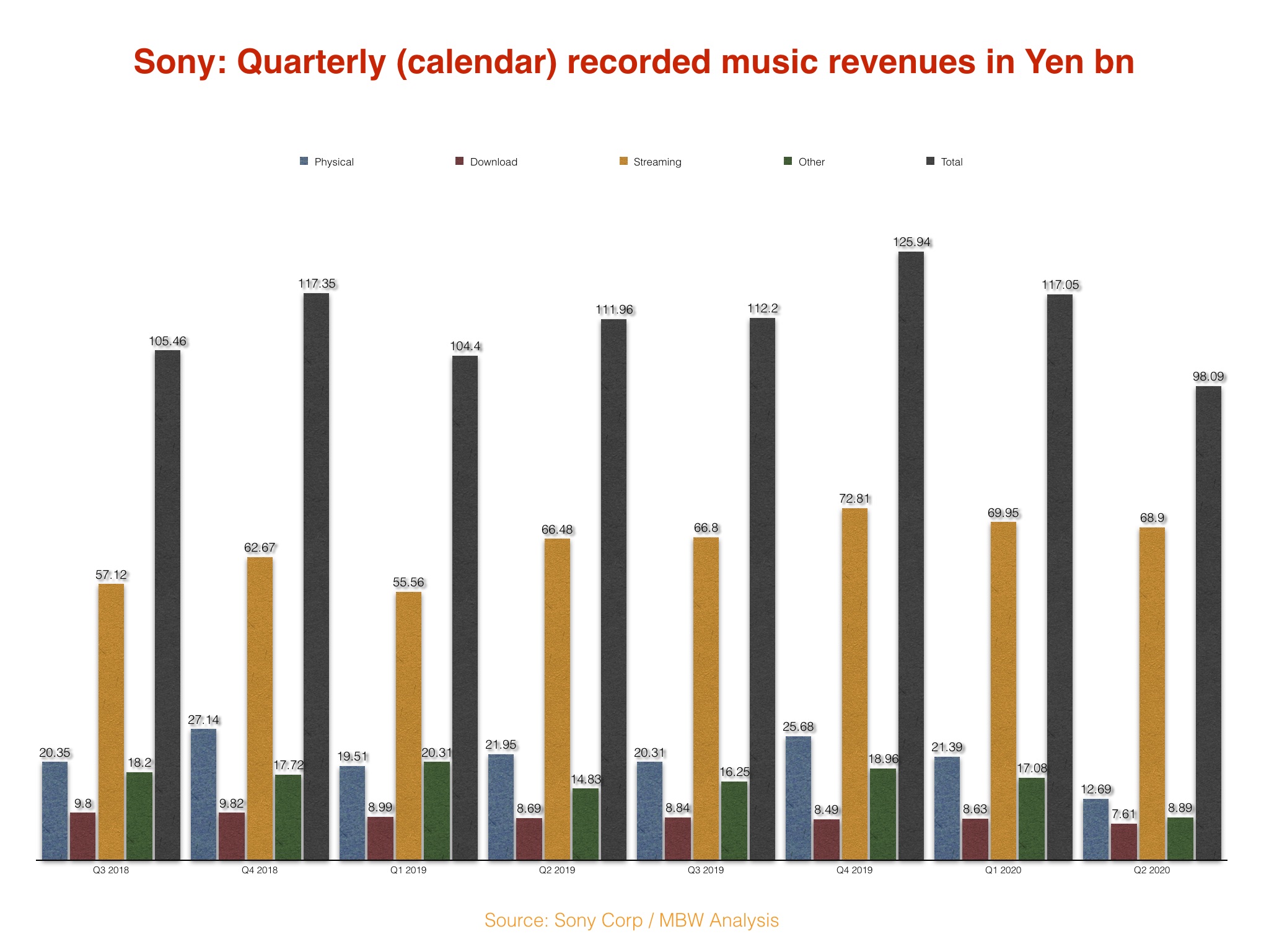 Sony Corp now breaks out streaming-related revenues for music publishing, which in calendar Q2 2020 stood at $129m (13.91bn Yen).