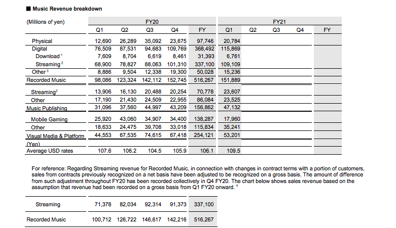 This isn’t a perfect system; it risks overplaying Sony Music Entertainment’s global business slightly by converting a chunk of revenues from Sony Music Entertainment Japan (which would usually be straight-reported in Yen) into US dollars.