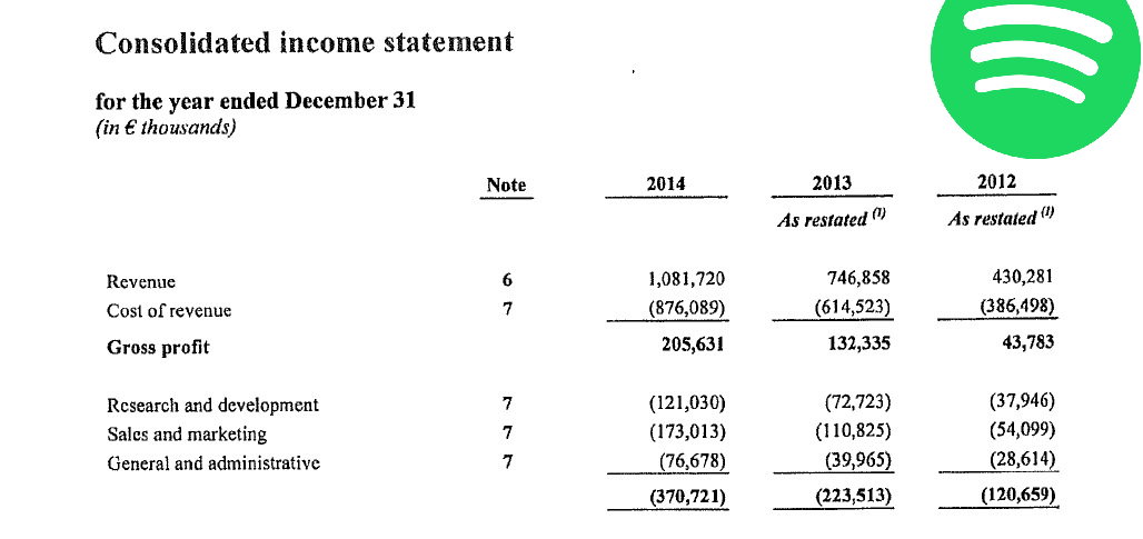 Twelve months later, Spotify (which admits its licensing costs make up the vast bulk of its cost of sales) was paying out €876.1m under this banner.