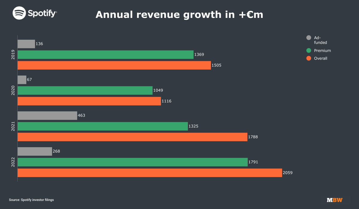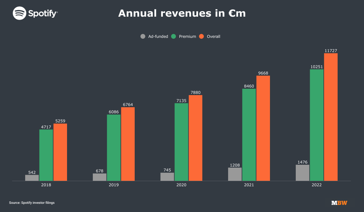 In terms of profitability, Spotify posted an operating loss of €231 million for Q4 2022, reflecting, according to Spotify, “higher personnel costs primarily due to headcount growth and higher advertising costs”.