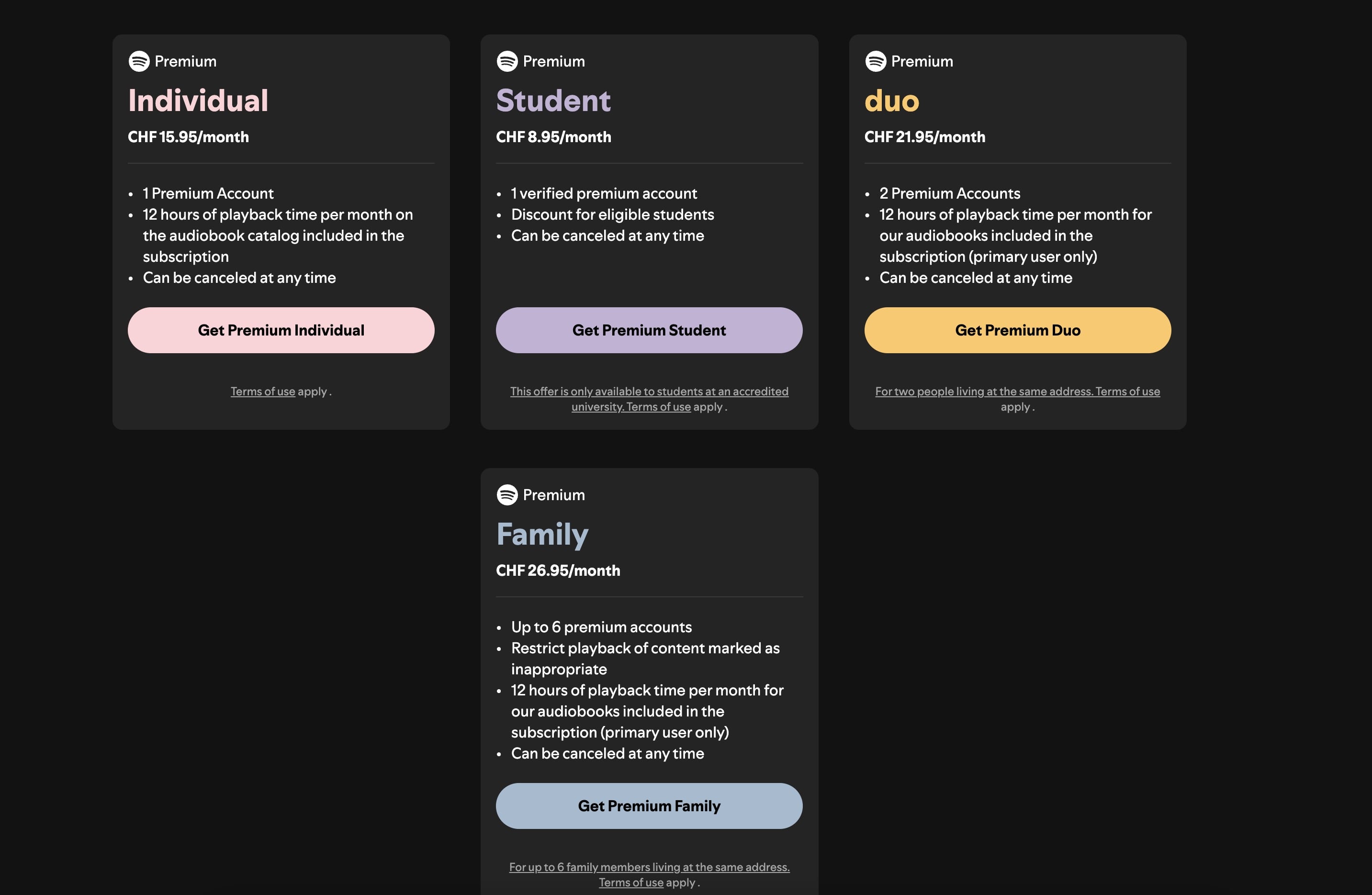 Spotify’s Duo plan in the market will now be priced at 21.95 CHF per month (up from 18.95 CHF), while Family plans in the market will rise to 26.95 CHF per month (up from 22.95 CHF).