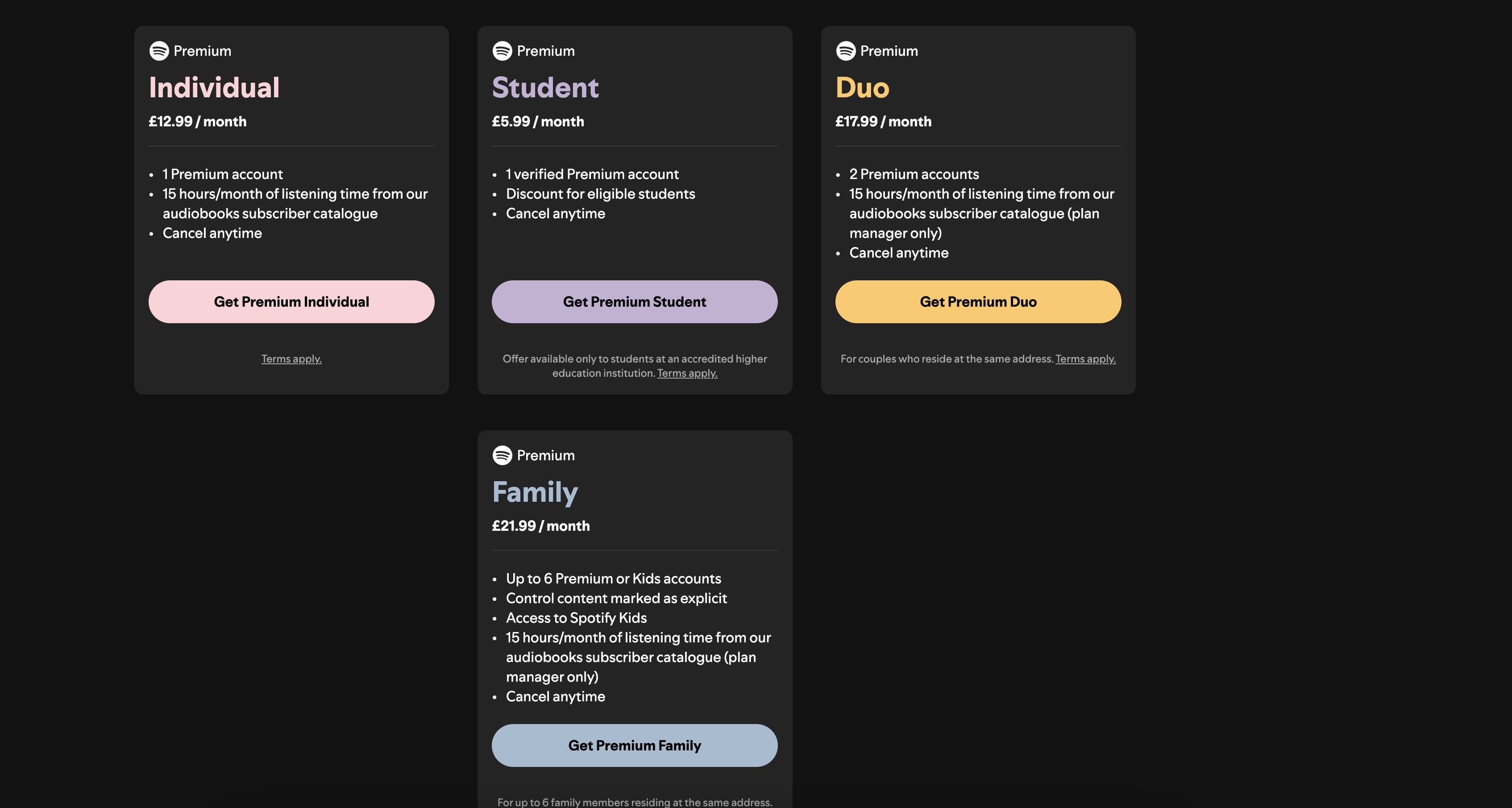 The price of Spotify’s Duo plan in the UK is also increasing, from £16.99 to £17.99 per month, while Family plans will rise from £19.99 to £21.99 per month.