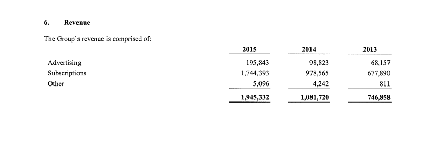 Advertising revenues nearly doubled in the 12 months, up 98% to $219m (€195.8m).