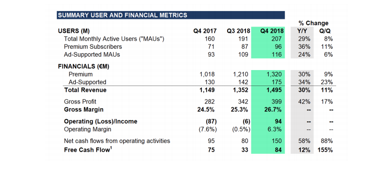 That wasn’t the biggest news in Spotify’s freshly announced financials for Q4 2018, though.