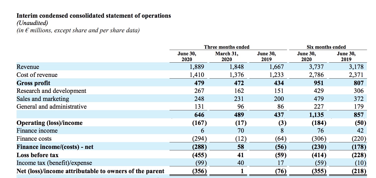 SPOT posted a €167m quarterly operating loss in Q2, but this figure fell to €356m in terms of net loss – largely due to €294m in finance costs.