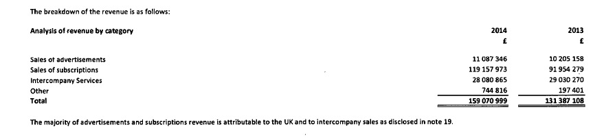 As you can see below, in monetary terms, ad-funded income rose by just £882,188 last year, while premium subscription revenue grew by £27,203,694.