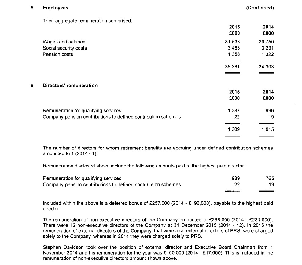 There is some extra detail when it comes to PRS’s staffing costs – and what it’s spending on employees.