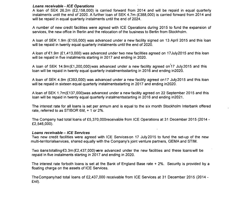 Another interesting area of the PRS financials covers the money it’s loaned new pan-EU collection project, ICE.