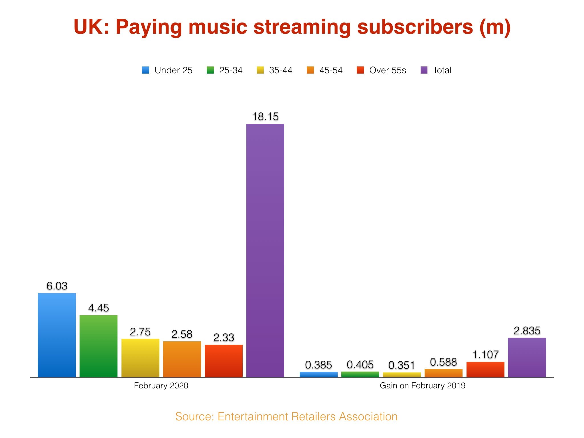 According to ERA – whose members include the likes of Spotify, SoundCloud, Amazon, Deezer and YouTube – there were approximately 18.15m paying UK subscribers to music streaming services at the end of February 2020.
