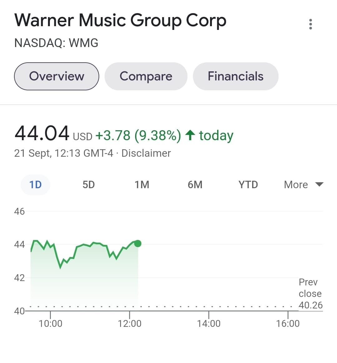 Universal wasn’t the only publicly traded music company to have a good day on the stock markets.