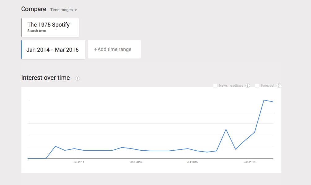 The Google chart below, depicting the popularity of the search for ‘The 1975 Spotify’ over two years, probably tells you all you need to know.
