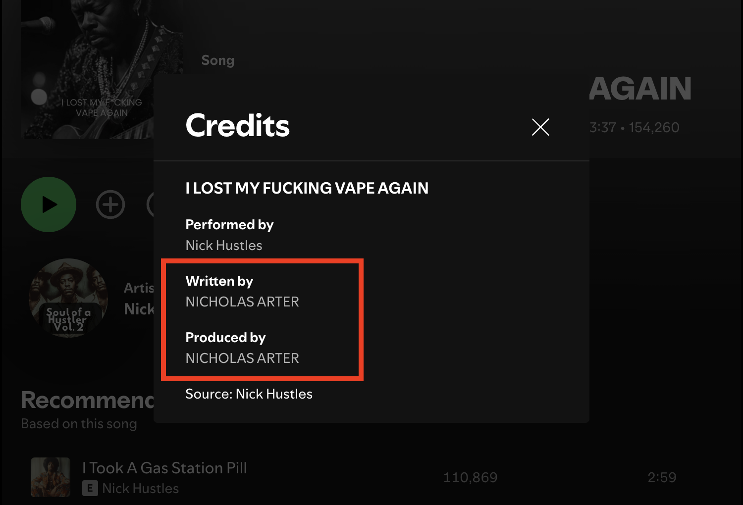 According to social profiles, Nick Hustles was unleashed into the world by Nick Arter, who describes himself as a “Songwriter | Lyricist | AI Storyteller | Music Futurist”.
