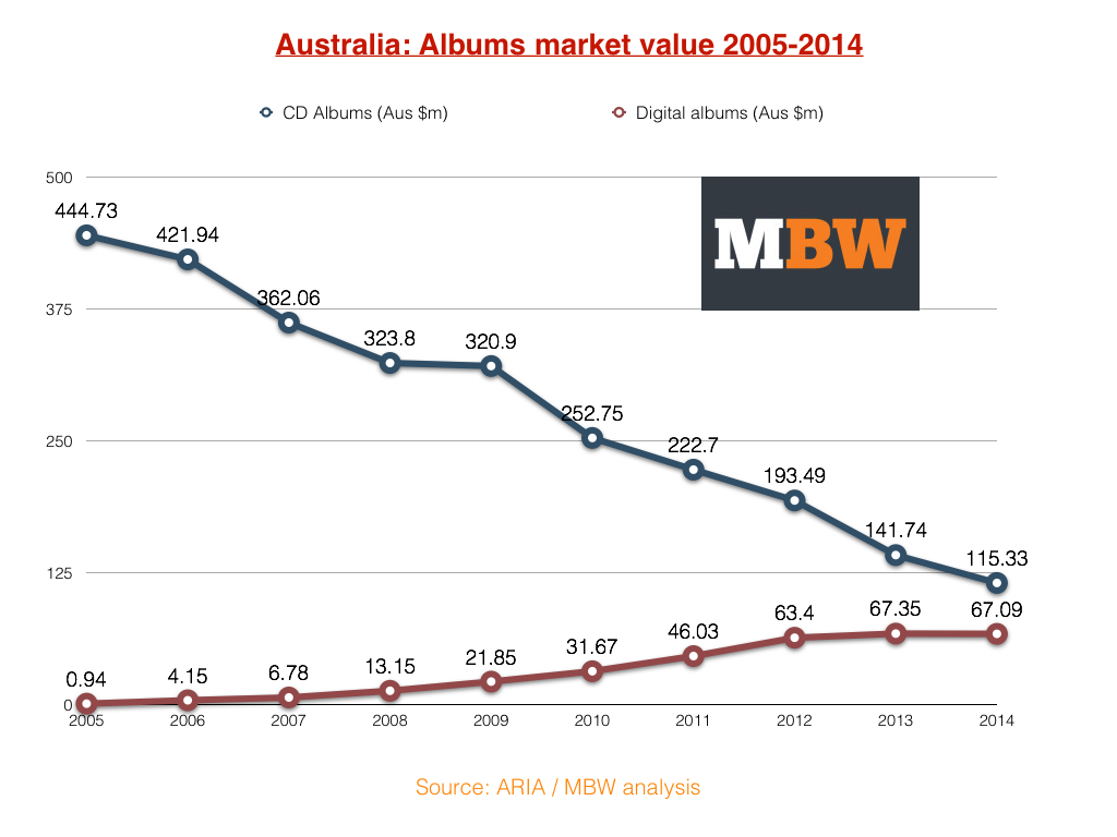 CD albums generated AUS $115.3m in 2014, down $26m from the $141.74m they created in 2013.