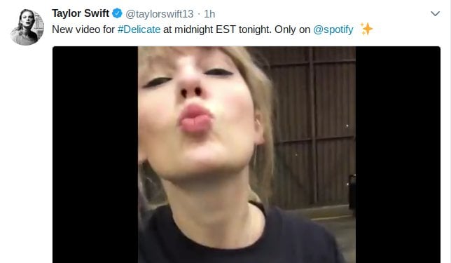 Yep: little over two weeks after premiering what was believed to be the official video for new single Delicate at the iHeartRadio Music Awards, Swift has announced that there’s an entirely new video for the song coming this evening.