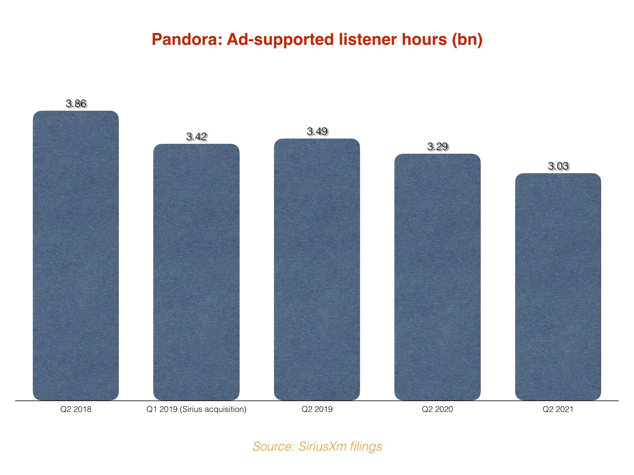 In Q2 2021 – as just announced in Sirius’s latest financial results – Pandora attracted 3.03 billion ad-supported listener hours.