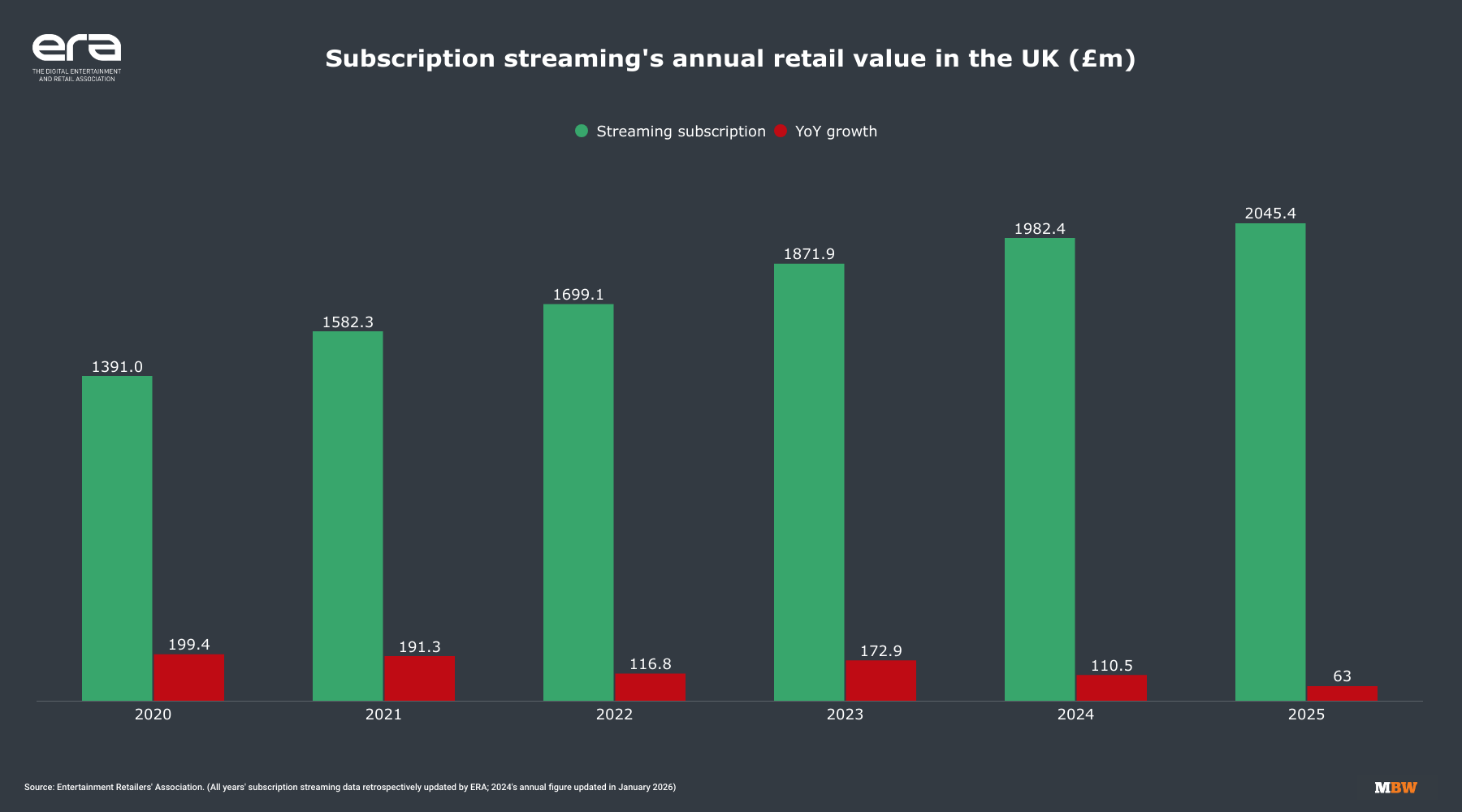 The slowdown is particularly notable given that the UK subscription market benefited from yet another Spotify price increase in 2025, albeit towards the end of the year.