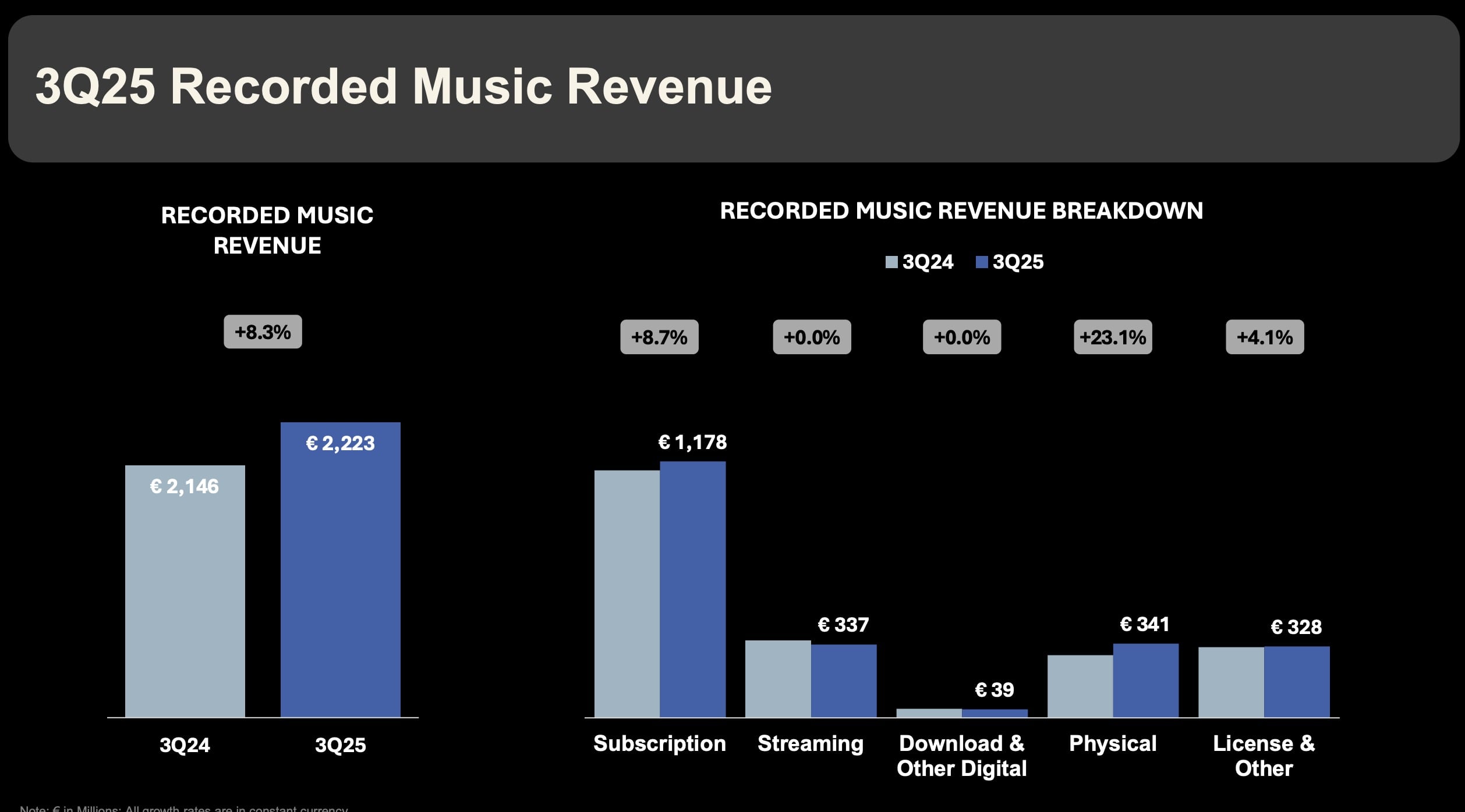 The execs’ comments arrived after UMG posted revenues of €3.021 billion ($3.53bn) across all of its divisions (including recorded music, publishing, and more) for Q3, up 10.2% YoY at constant currency.