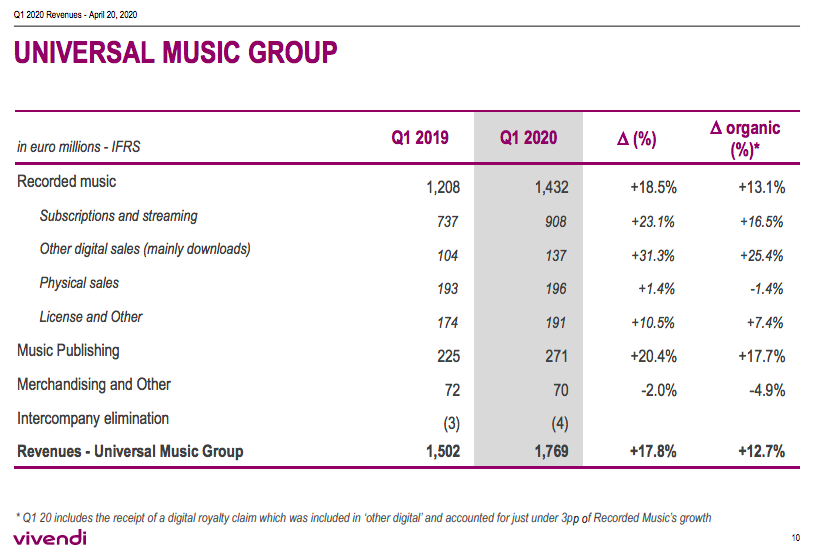 In positive news for the whole industry, Vivendi’s decision not to single Universal Music Group out there suggests that, by and large, UMG’s results were comparatively unaffected by the COVID-19 pandemic.