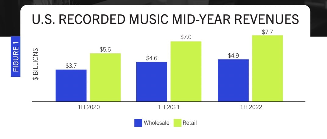 On a retail basis, recorded music revenues in the US (money spent on streaming subscriptions, as well as physical and digital music), grew $700 million YoY to $7.7 billion in the first half of this year (up from $7 billion in H1 2021).