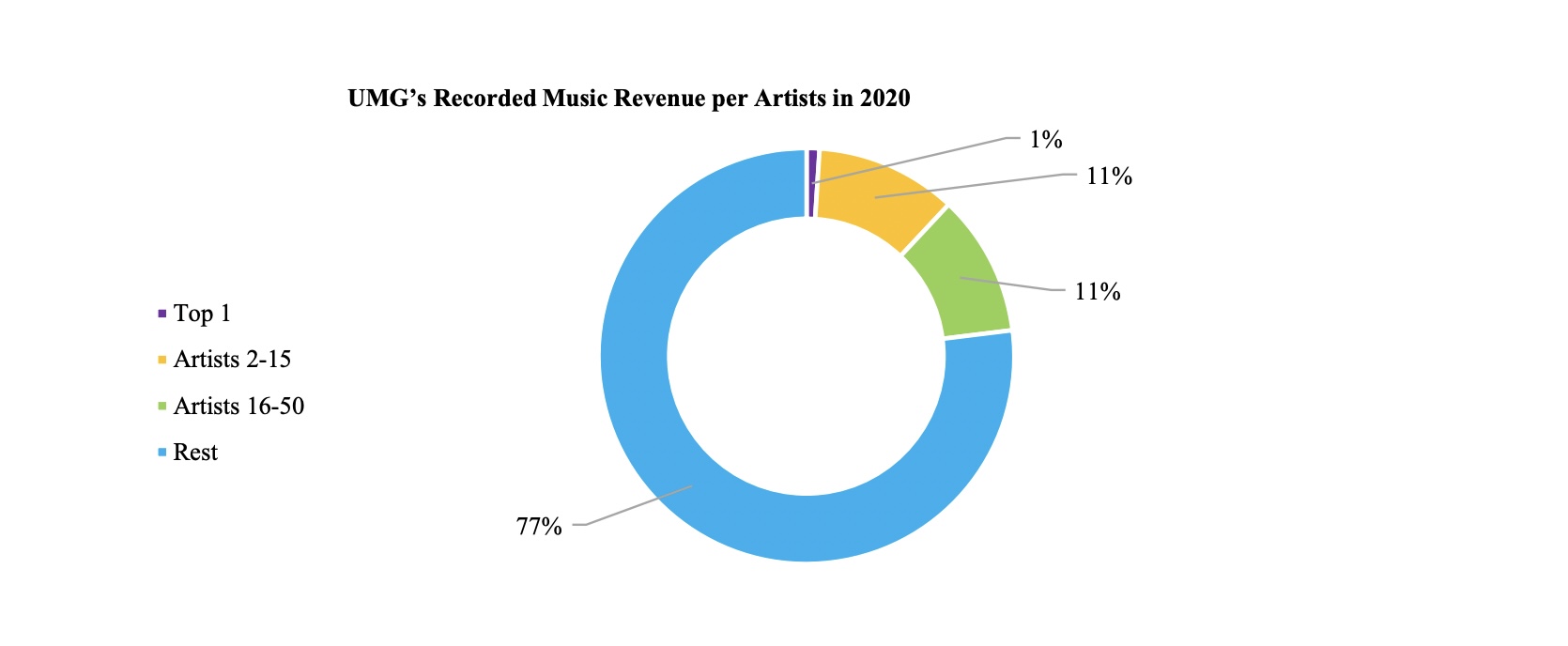 2. The top 50 artists at universal only accounted for 23% of UMG’s recorded music revenue in 2020.