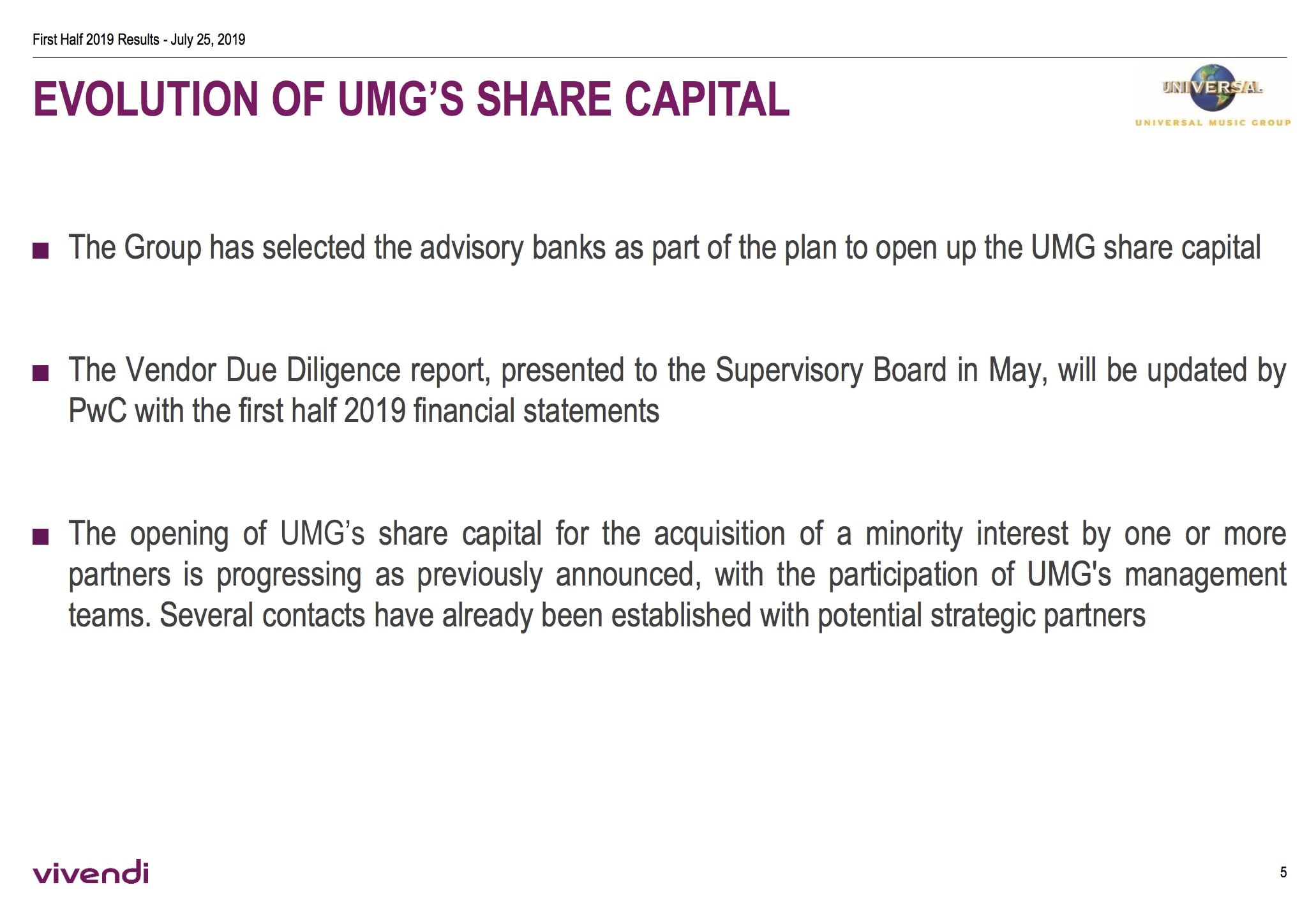 Last July Vivendi also said that it could possibly complete the UMG process by the end of January 2020.