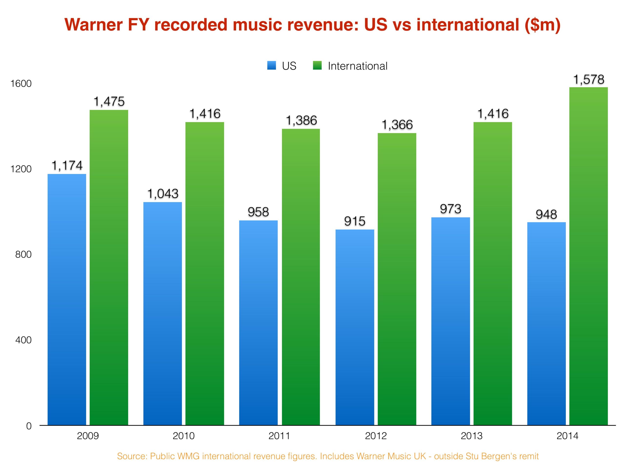 Tellingly, US revenues made up just 37.5% of total 2014 Warner recorded music income, with almost two-thirds coming from elsewhere in the world.
