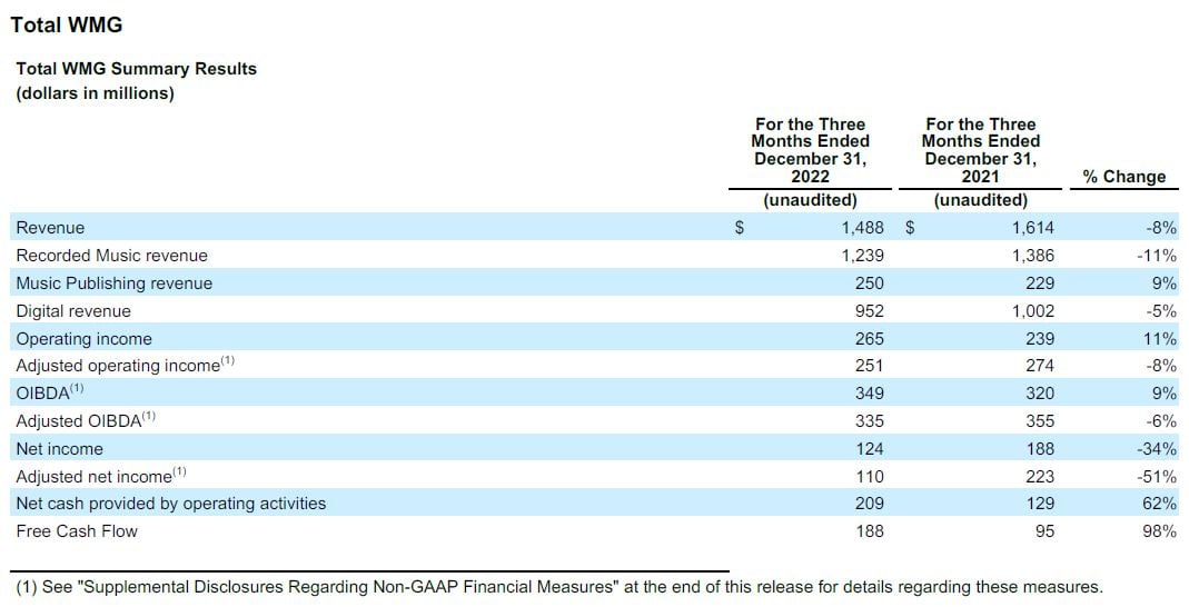 The music company revealed these numbers as part of its calendar Q4 2022 (fiscal Q1) financial results.