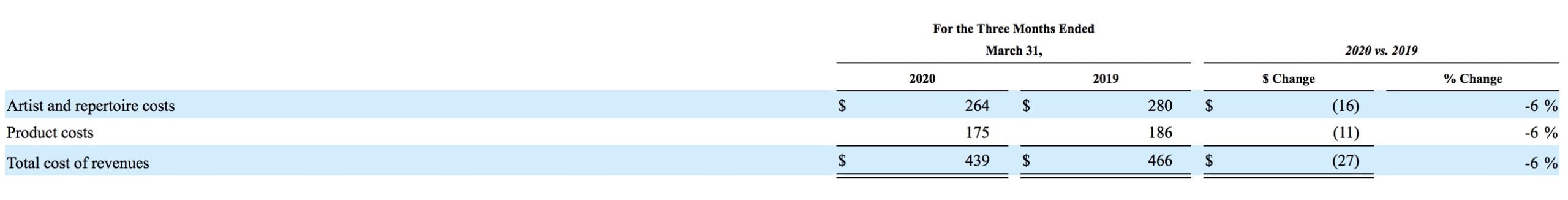 “The decrease [in Warner’s calendar Q1 A&R expenditure] is primarily attributable to lower artists related costs, including a decrease in spending resulting from the impact of COVID-19.”