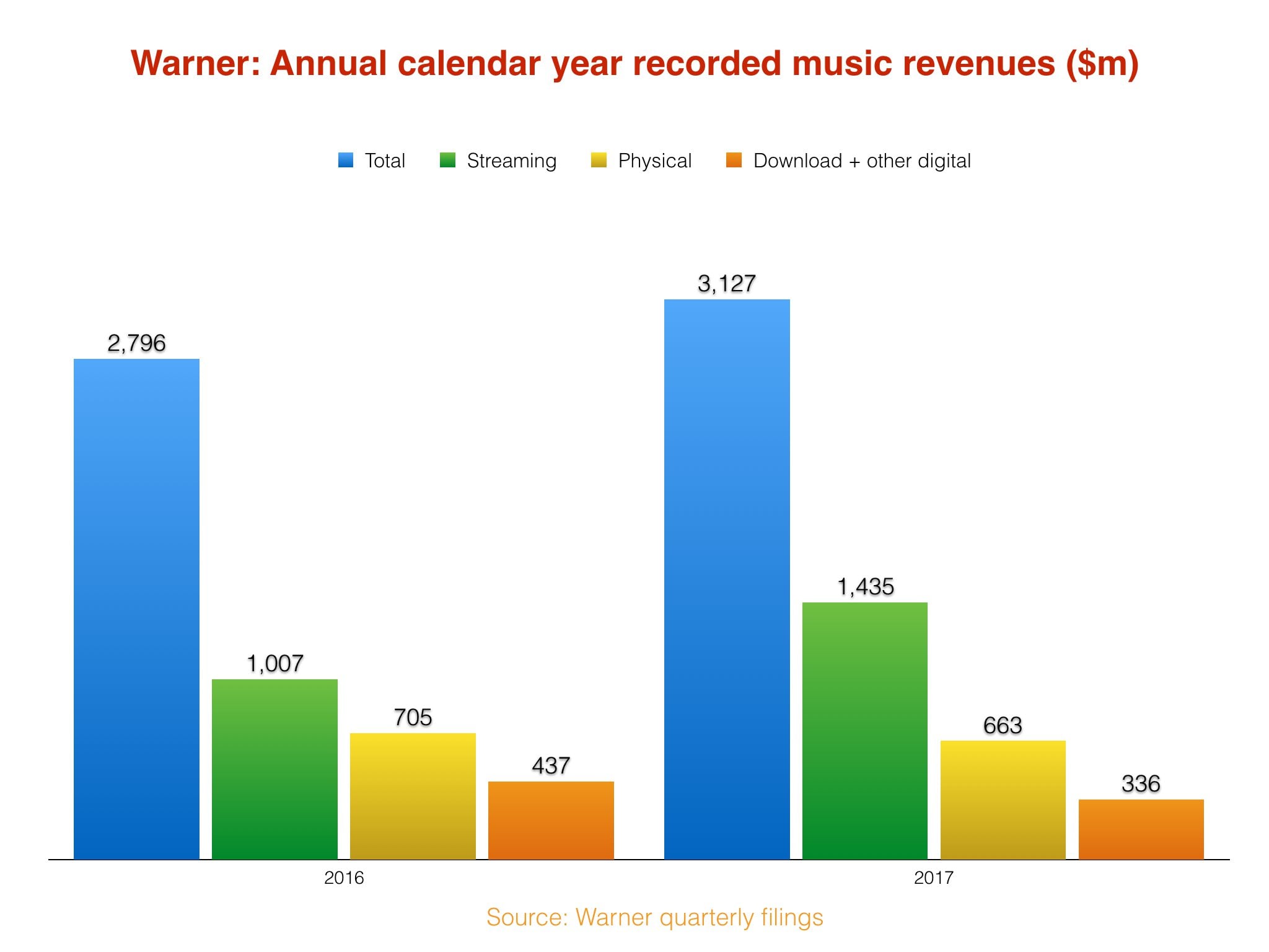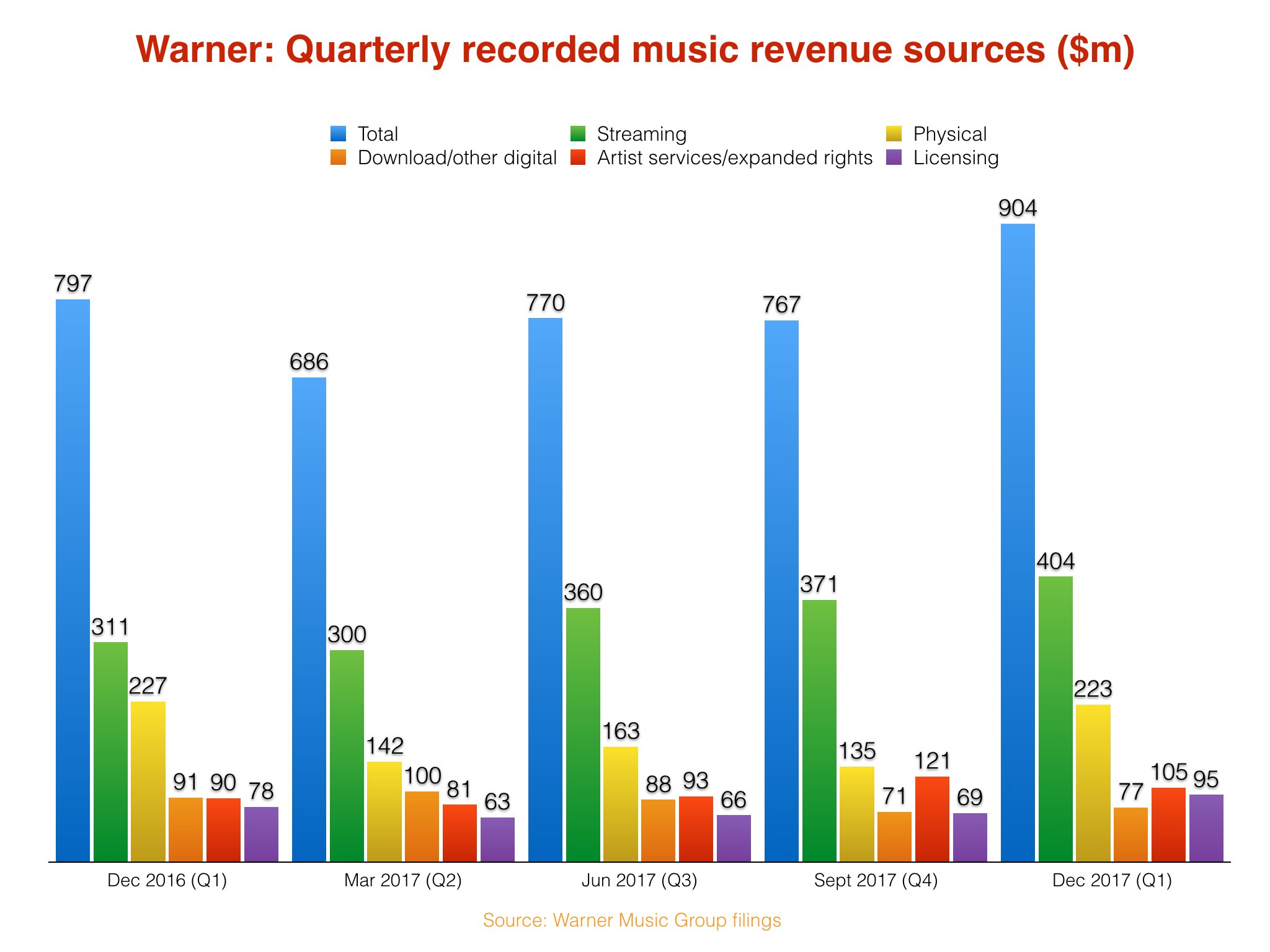 They showed the Warner Music Group (including publishing and recorded music) posted over $1bn in a quarterly period for the first time in history.
