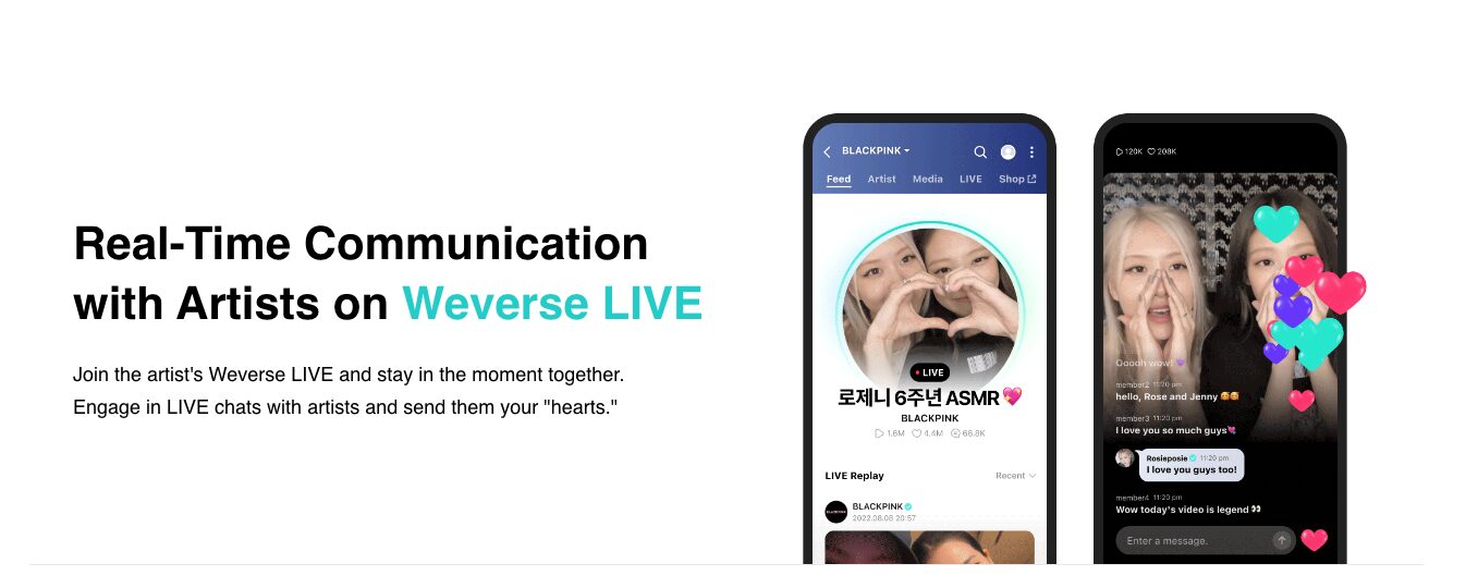 We’re talking about direct communication, exclusive experiences, and developing relationships with them. We know this will drive artist’s success in the long run. Weverse will continue to work alongside artists and labels to explore different business areas to further enhance this direct-to-fan communication.