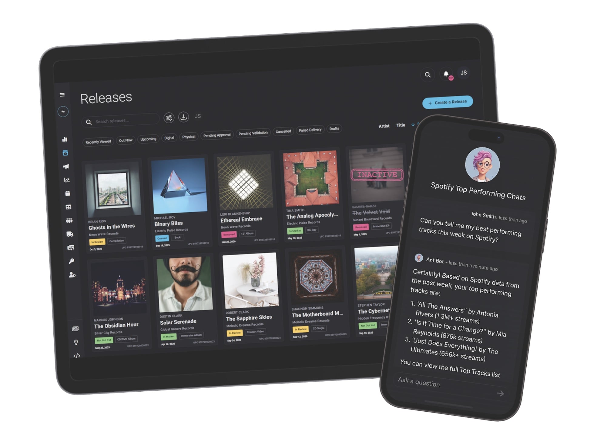 For example, with Anthology we can see exactly which track is reacting on TikTok and causing a spike in streams in a certain territory, and we can generate social media copy and asset suggestions to double down on the popularity – all without leaving Anthology.