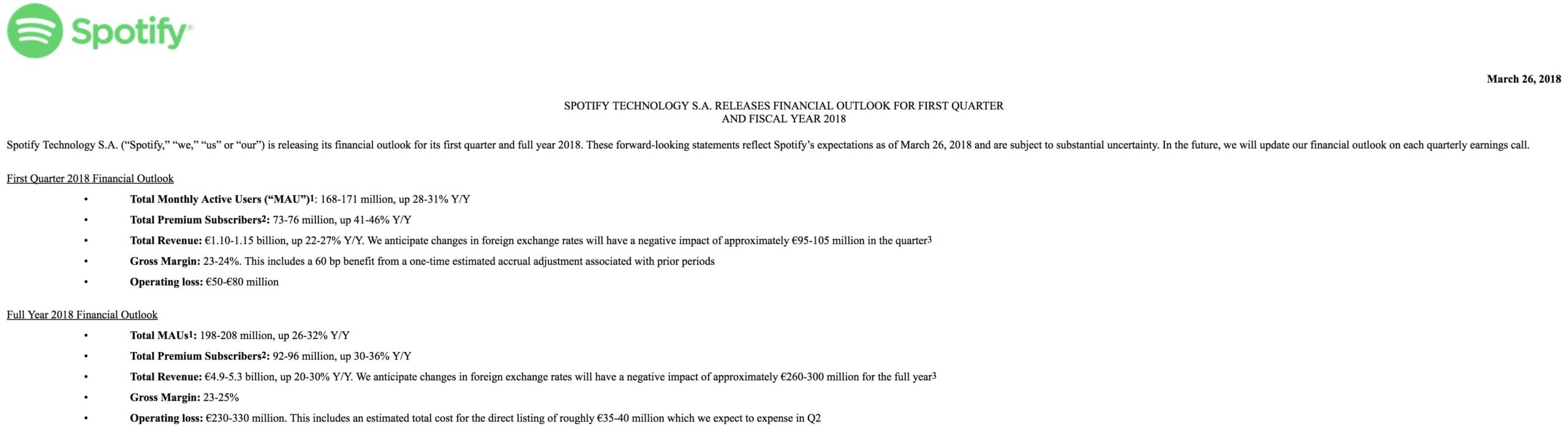 Remember that Spotify is forecasting that it will end 2018 with between 92m and 96m subscribers.
