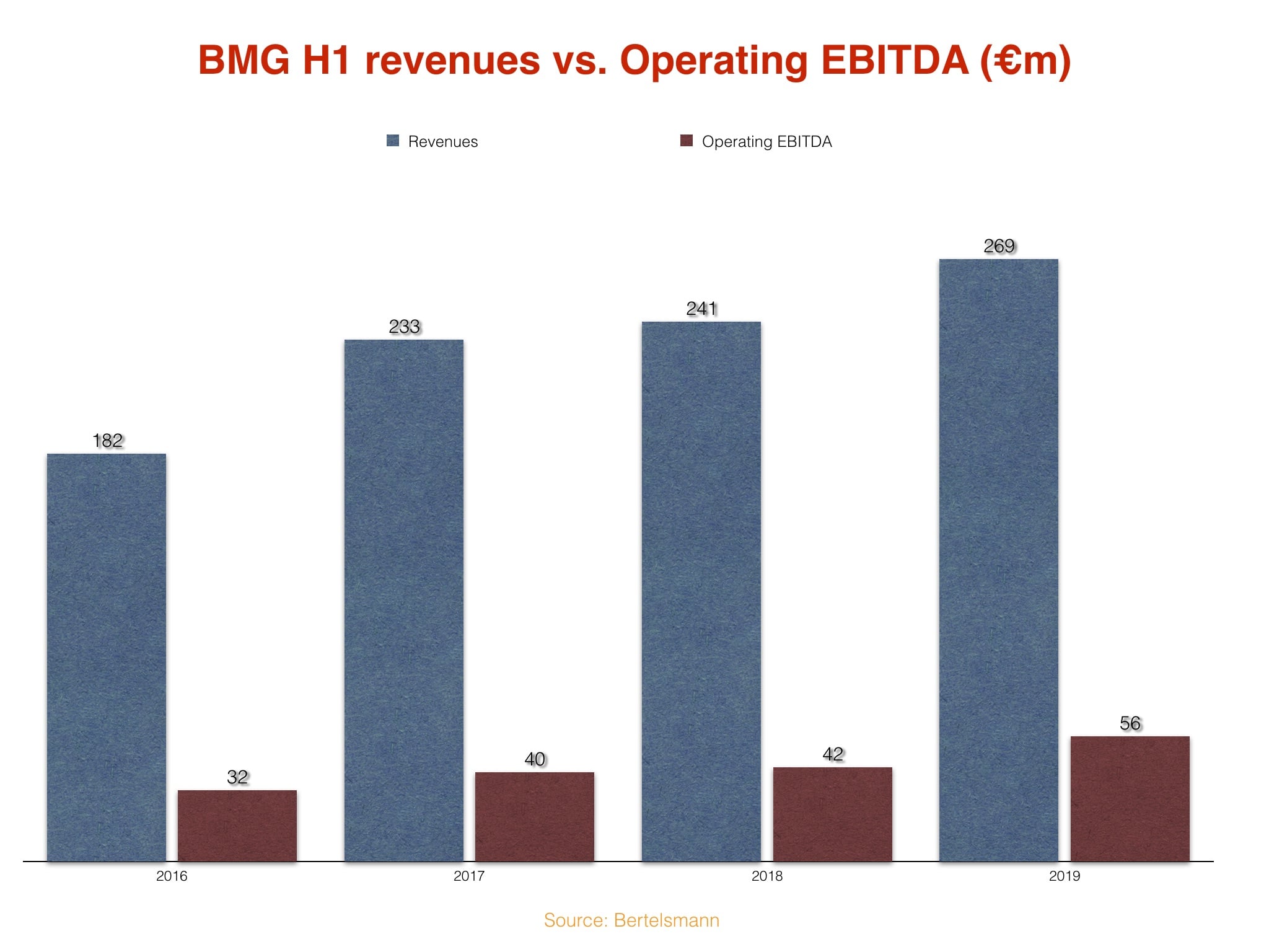 His point: BMG is, increasingly, a more profitable company. Its revenues might have risen 11.4% year-on-year in H1 2019 (to €269m/$305m), but the company’s operating EBITDA margin shot up even faster, by 16.7% (to €49m/$56m) in the same period.