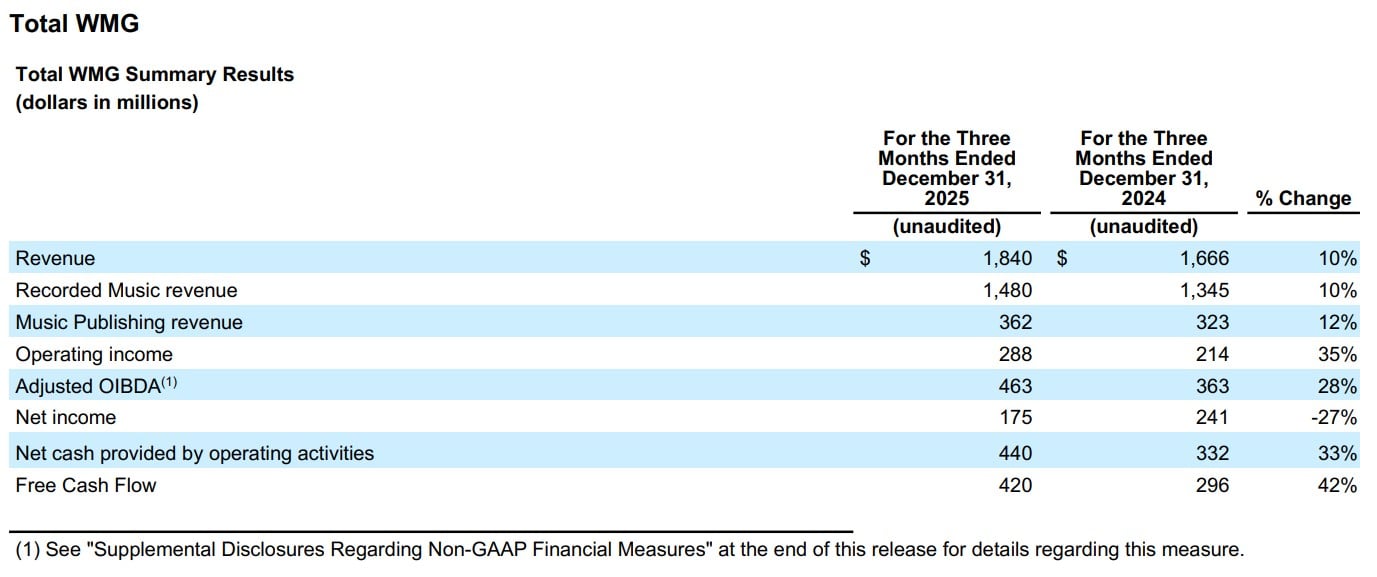 WMG: PROFITABILITY IN CALENDAR Q4 2025