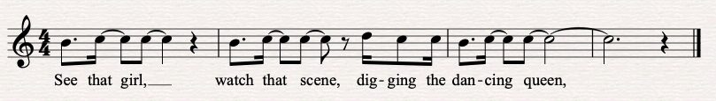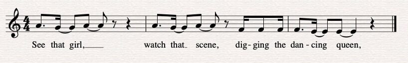Now… two songs with lyrics from Dancing Queen by ABBA: