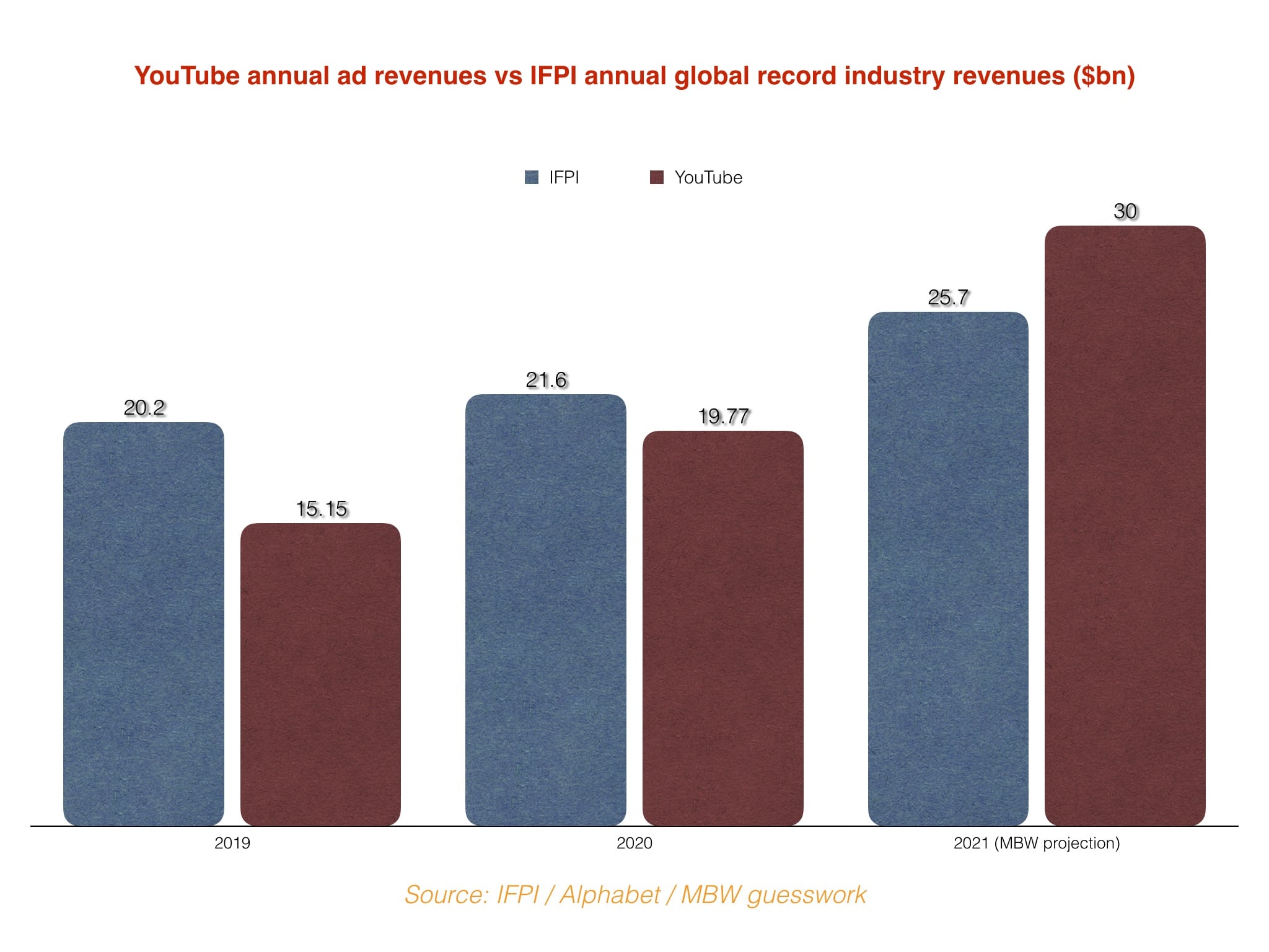 The upshot: YouTube’s own annual revenues just from ads should easily eclipse this IFPI figure – for the first ever time – this year.
